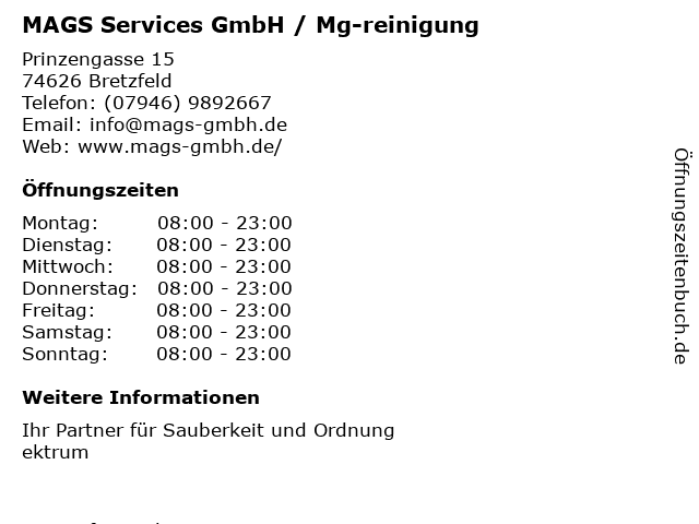 | Montag | 08:00-23:00 |