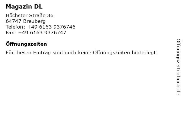 | Adresse Magazin DL in Breuberg anzeigen |