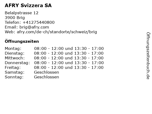 | Öffnungszeiten AFRY Svizzera SA in Brig anzeigen | |