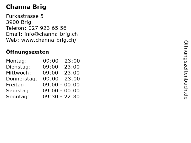 | Öffnungszeiten Channa Brig in Brig anzeigen | |