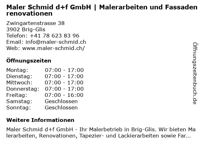 Branchen & Suchbegriffe zu Maler Schmid d+f GmbH | Malerarbeiten und Fassadenrenovationen:altbausanierung, aussenanstrich, brig maler, d+f, fassadenisolation, fassadenmalerei, fassadenrenovationen, gipserarbeiten klein, holzbehandlung, innenanstrich, lackierarbeiten, maler, maler visp, malerarbeiten, oberwallis maler, renovationen, risssanierung, sanierung, schimmelbehandlung, schmid, tapezierarbeiten, umbau, wandgestaltung, wohnraumgestaltung |