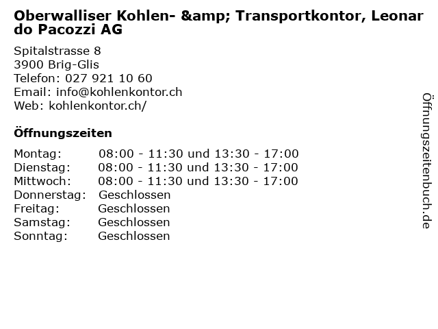 Branchen & Suchbegriffe zu Oberwalliser Kohlen- & Transportkontor, Leonardo Pacozzi AG:kohlen, leonardo, oberwalliser, pacozzi, transportkontor |
