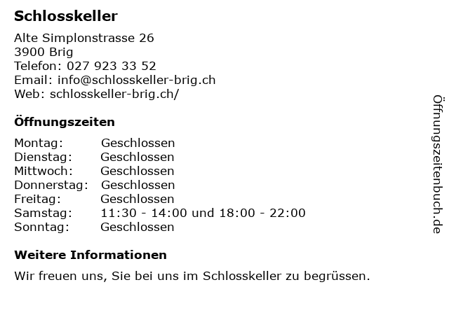 Hinweis: Wir freuen uns, Sie bei uns im Schlosskeller zu begrüssen.