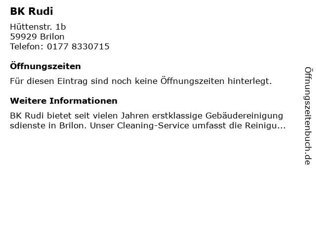 | Öffnungszeiten BK Rudi in Brilon anzeigen | |