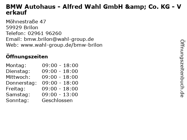Branchen & Suchbegriffe zu BMW Autohaus - Alfred Wahl GmbH & Co. KG - Verkauf:alfred, auto, autohaus, automobilgesellschaft, bmw, brilon, fahrzeuge, mbh, service, verkauf, wahl |
