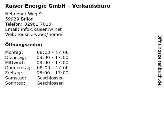 3 Reinhold Klaholz innovative Energie- und Umwelttechnik (Entfernung: 2,29 km) Hesdiner Ring 6, 59929 Brilon 5 Christian Hellwig GmbH u. Co. Energie und Raumkonzepte (Entfernung: 11,83 km) Briloner Straße 12, 34508 Willingen-Upland 6 |