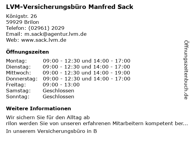 3 LVM Versicherung Michael Iske - Versicherungsagentur (Entfernung: 14,30 km) Korbacher Straße 20, 34508 Willingen (Upland) 4 LVM Versicherung Robert Alteköster - Versicherungsagentur (Entfernung: 16,53 km) Mittelstraße 5, 33181 Bad Wünnenberg 5 LVM Versicherung Tobias Klauke - Versicherungsagentur (Entfernung: 17,36 km) Senge-Platten-Straße 6, 59955 Winterberg 6 |