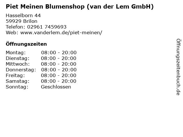 Branchen & Suchbegriffe zu Piet Meinen Blumenshop (van der Lem GmbH):blumen, blumenladen, blumenshop, gärtnerei, lem, meinen, pflanzen, piet, van |