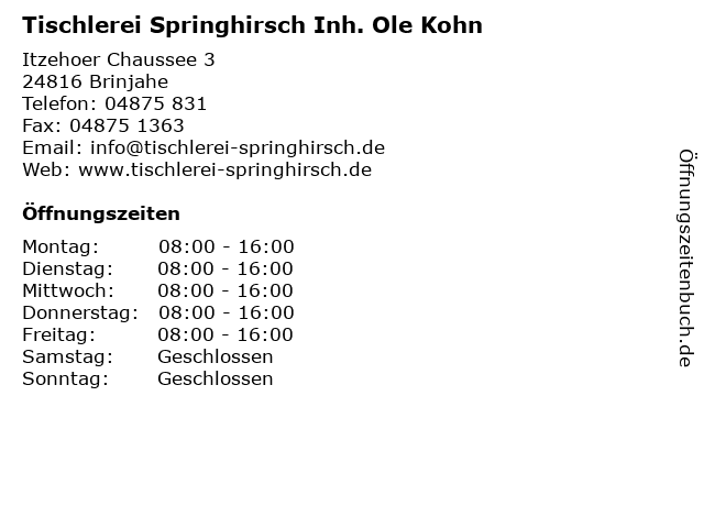 Branchen & Suchbegriffe zu Tischlerei Springhirsch Inh. Ole Kohn:kohn, ole, springhirsch, tischlerei |