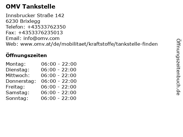 | Öffnungszeiten OMV Tankstelle in Brixlegg anzeigen | |