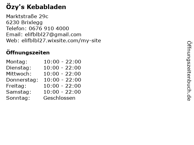 | Öffnungszeiten Özy's Kebabladen in Brixlegg anzeigen | |