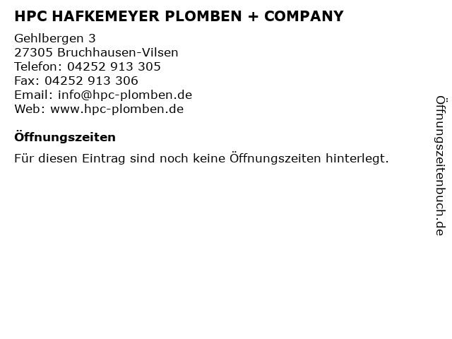 | HPC HAFKEMEYER PLOMBEN + COMPANY anrufen | |
