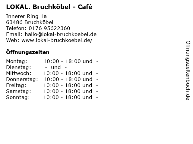 | Öffnungszeiten LOKAL. Bruchköbel - Café in Bruchköbel anzeigen | |