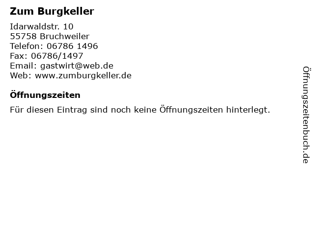 | Öffnungszeiten Zum Burgkeller in Bruchweiler anzeigen | |