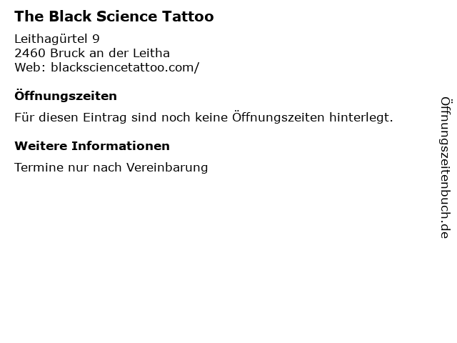 Öffnungszeiten The Black Science Tattoo in Bruck an der Leitha anzeigen | |