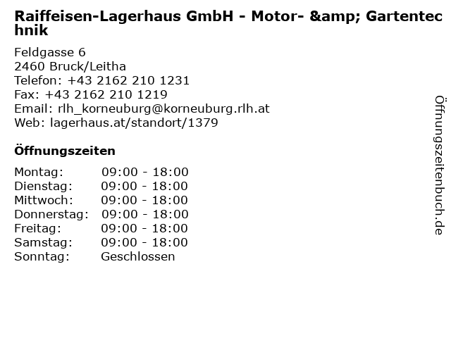 3 Raiffeisen-Lagerhaus GmbH - Zentrale und Brennstoffe (Entfernung: 0,07 km) Lagerhausstraße 3, 2460 Bruck/L. 6 |