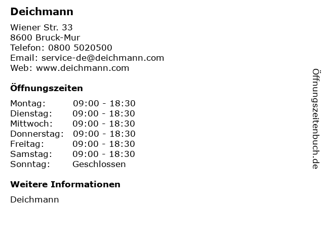 | Öffnungszeiten Deichmann in Bruck-Mur anzeigen | |