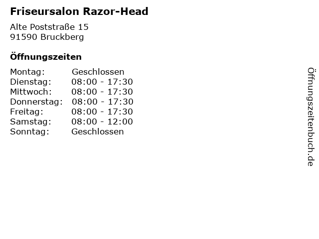 | Öffnungszeiten Friseursalon Razor-Head in Bruckberg anzeigen | |