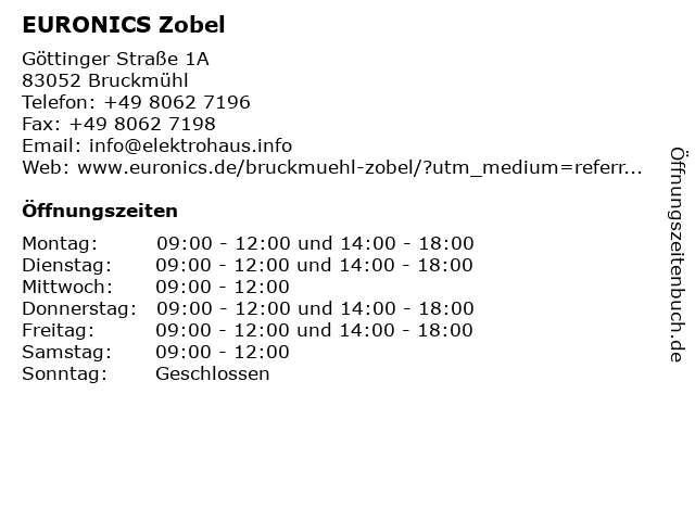 | Öffnungszeiten EURONICS Zobel in Bruckmühl anzeigen | |
