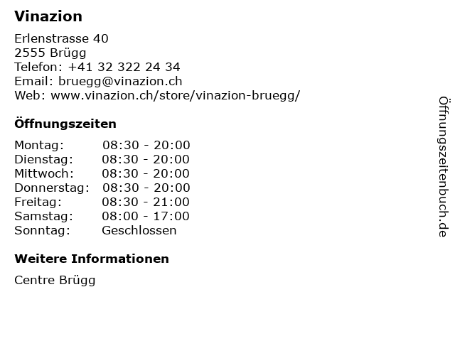 | Öffnungszeiten Vinazion in Brügg anzeigen | |