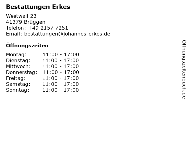 | Öffnungszeiten Bestattungen Erkes in Brüggen anzeigen | |