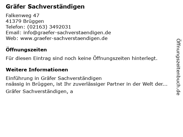 | Öffnungszeiten Gräfer Sachverständigen in Brüggen anzeigen | |