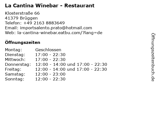 Branchen & Suchbegriffe zu La Cantina Winebar - Restaurant:bar, cantina, essen, getränke, italienisch, la, restaurant, speisen, take away, wein, winebar |