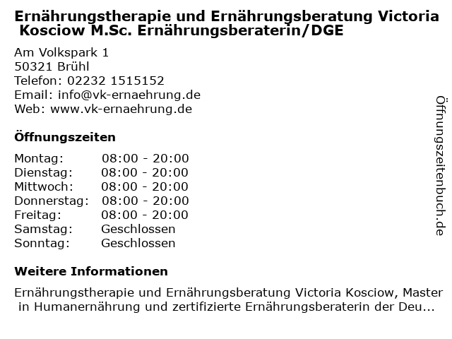 Branchen & Suchbegriffe zu Ernährungstherapie und Ernährungsberatung Victoria Kosciow M.Sc. Ernährungsberaterin/DGE:ernährungsberaterin/dge, ernährungsberatung, ernährungstherapie, kosciow, m.sc., psychologische beratung, victoria |