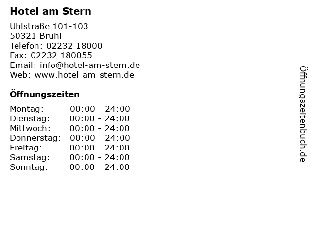 | Öffnungszeiten Hotel am Stern in Brühl anzeigen | |