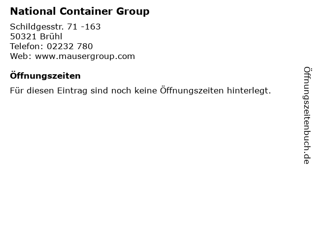 | Öffnungszeiten National Container Group in Brühl anzeigen | |
