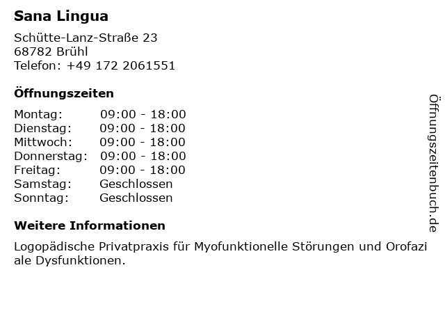 | Öffnungszeiten Sana Lingua in Brühl anzeigen | |