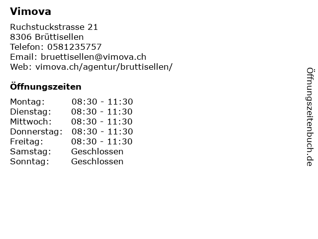 | Öffnungszeiten Vimova in Brüttisellen anzeigen | |