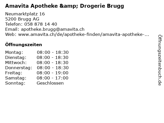 1 Apotheke-Drogerie-Reformhaus Kuhn AG - Ihre Apotheke in der Region Brugg AG (Entfernung: 0,12 km) Bahnhofplatz 7, 5200 Brugg AG 6 |