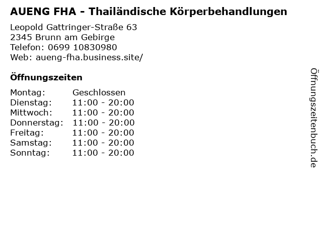 1 My Nuad Thai - Traditionelle thailändische Massage (Entfernung: 11,76 km) Gumpendorfer Straße 22, 1060 Wien 2 Natascha Schneider - Kosmetik und Körperbehandlungen (Entfernung: 14,03 km) Fuchsthallergasse 12, 1090 Wien 4 LeBeSchön Kosmetikstudio in Brunn am Gebirge (Entfernung: 0,58 km) Wienerstraße 4, 2345 Brunn am Gebirge 6 |