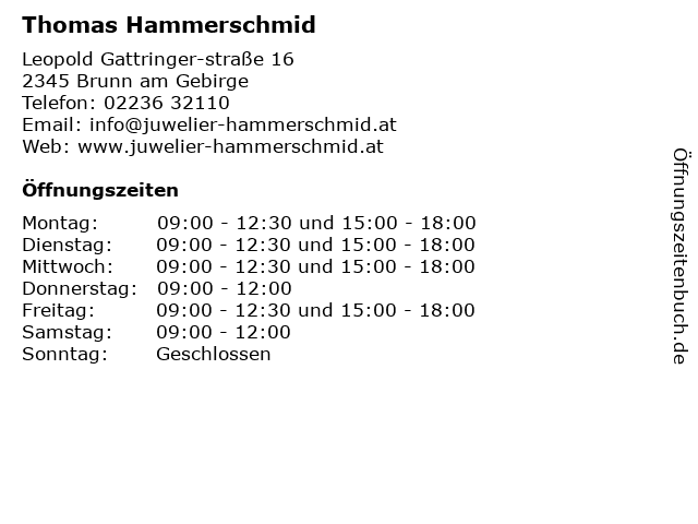 | Öffnungszeiten Thomas Hammerschmid in Brunn am Gebirge anzeigen | |