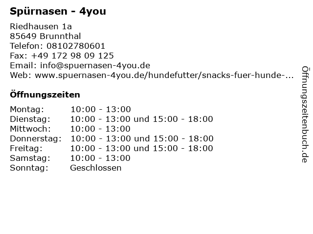 | Öffnungszeiten Spürnasen - 4you in Brunnthal anzeigen | |