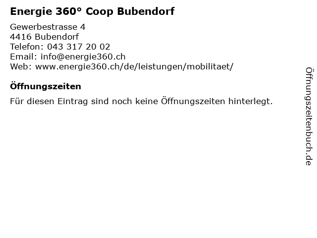 Branchen & Suchbegriffe zu Energie 360° Coop Bubendorf:360°, bubendorf, coop, energie |