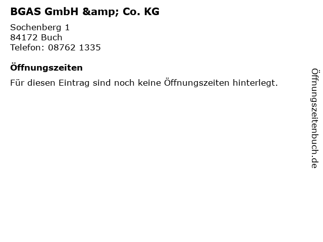 | Öffnungszeiten BGAS GmbH & Co. KG in Buch anzeigen | |
