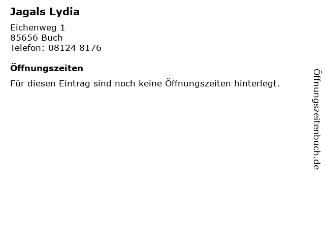 | Öffnungszeiten Jagals Lydia in Buch anzeigen | |
