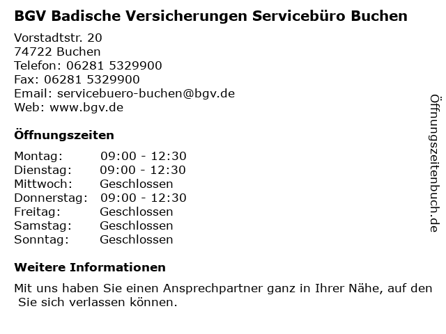 Branchen & Suchbegriffe zu BGV Badische Versicherungen Servicebüro Buchen:badische, bgv, buchen, servicebüro, versicherungen |