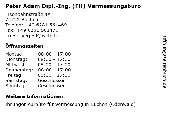 2 Dipl.-Ing. Bernd Scheuermann (FH) Gebäudeenergieberatung (Entfernung: 0,35 km) Mühltalstr. 8, 74722 Buchen 3 BRAUN-Electronic, Dipl. -Ing. (FH) Ralf Braun (Entfernung: 9,25 km) Joachim-Schulz-Str. 1, 69427 Mudau 5 Klaus Kistner Dipl.-Ing. FH Susanne Freie Architekten (Entfernung: 13,71 km) Mittlere Eckenbergstr. 34, 74740 Adelsheim 6 |