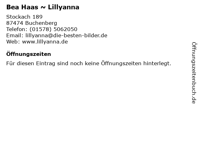 | Öffnungszeiten Bea Haas ~ Lillyanna in Buchenberg anzeigen | |