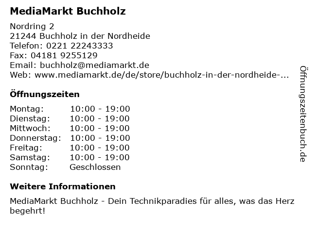 Branchen & Suchbegriffe zu MediaMarkt Buchholz:anbieter für telekommunikationsgeräte, buchholz, computergeschäft, geschäft für handyzubehör, geschäft für heimaudiosysteme, geschäft für videospiele, handyreparaturgeschäft, haushaltsgeräte, mediamarkt, mobiltelefongeschäft |