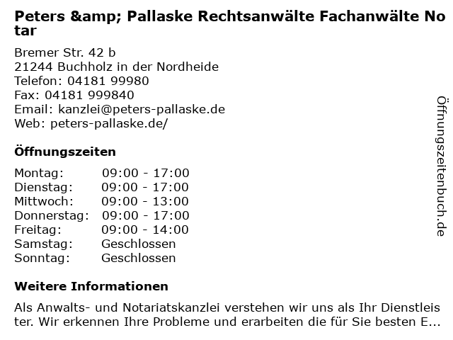 Branchen & Suchbegriffe zu Peters & Pallaske Rechtsanwälte Fachanwälte Notar:fachanwälte, notar, pallaske, peters, rechtsanwälte |