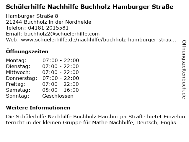 Branchen & Suchbegriffe zu Schülerhilfe Nachhilfe Buchholz Hamburger Straße:bildungszentrum, buchholz, hamburger, nachhilfe, schülerhilfe, straße |