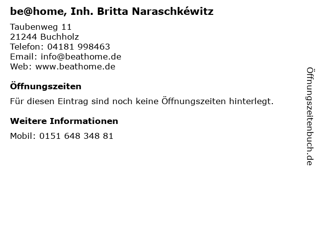 | be@home, Inh. Britta Naraschkéwitz anrufen | |