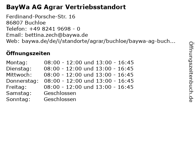 Öffnungszeiten BayWa AG Agrar Vertriebsstandort in Buchloe anzeigen