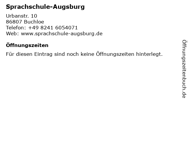 | Öffnungszeiten Sprachschule-Augsburg in Buchloe anzeigen | |