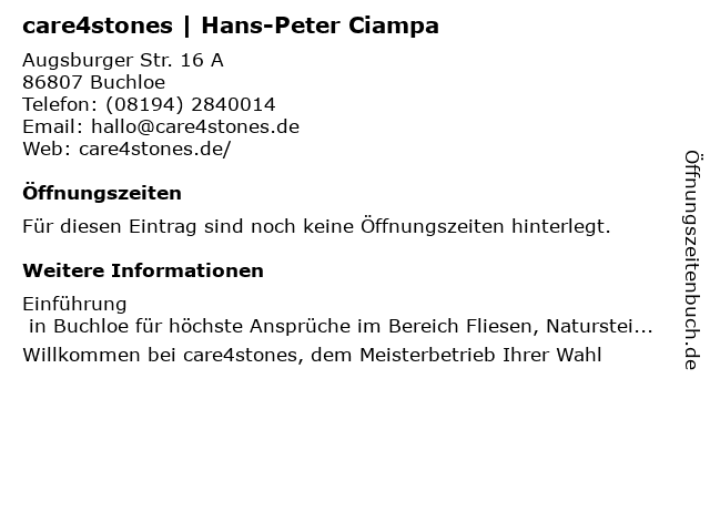 | care4stones | Hans-Peter Ciampa anrufen | |
