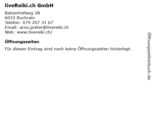 | Öffnungszeiten liveReiki.ch GmbH in Buchrain anzeigen | |